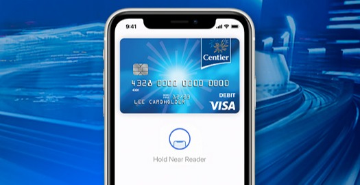 Checking out at your favorite participating retailers is now just a touch away. You can now securely use your Centier Visa® Debit card to make purchases with Apple Pay. Apple Pay allows you to simplify the way you shop. Just add your Centier Visa® Debit card to the Wallet App and start making purchases from your iPhone® or Apple Watch®.